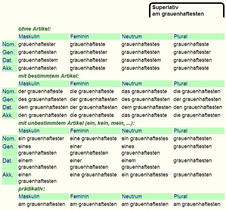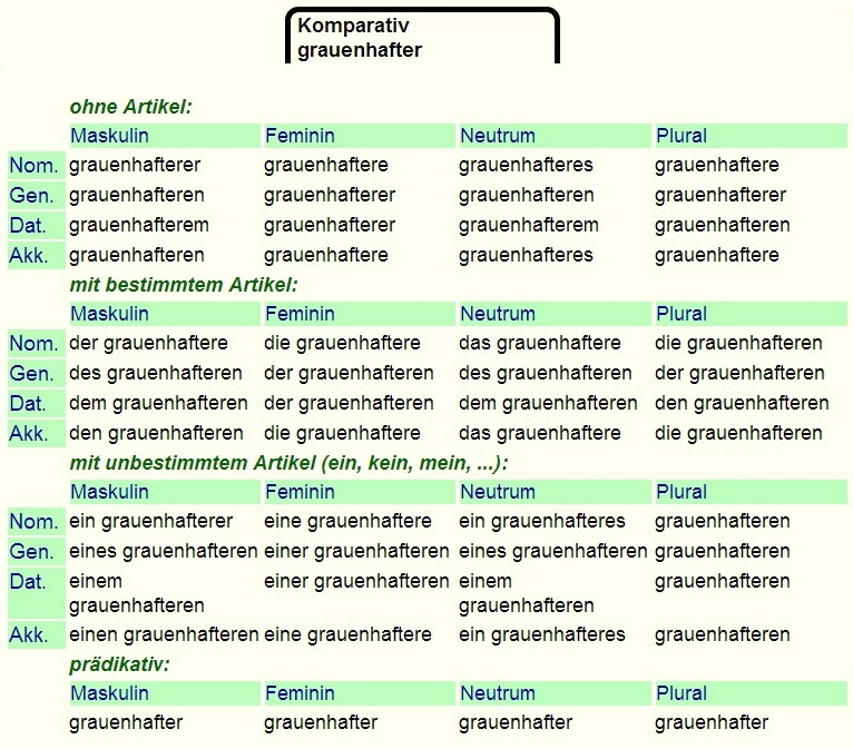 Deklination von - grauenhaft