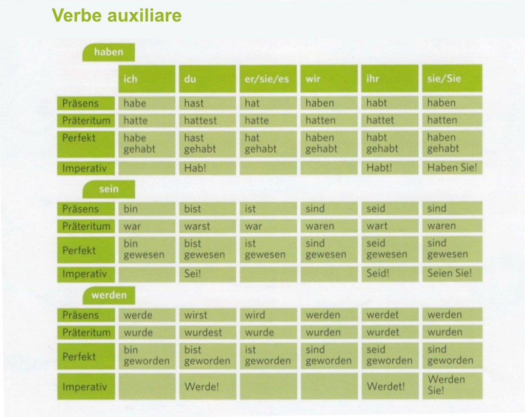 Cele mai importante verbe neregulate (die wichtigsten unregelmäßigen Verben - Hilfsverben)