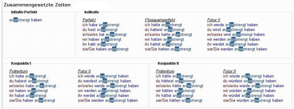 Verbformen von - anstrengen