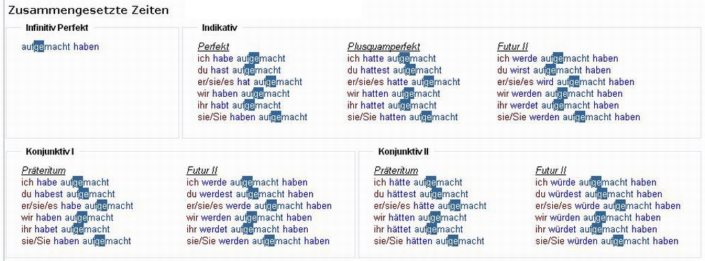 Verbformen von - aufmachen