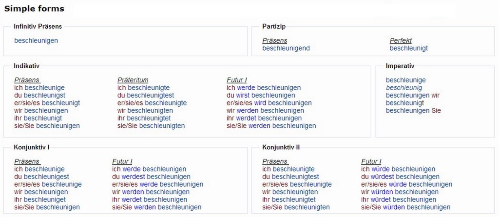 Verbformen von - beschleunigen