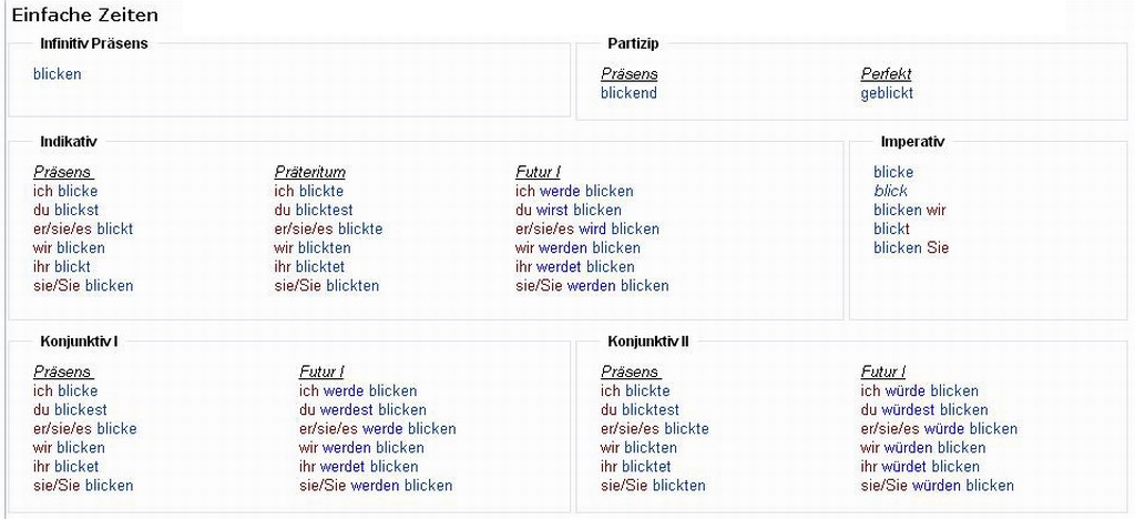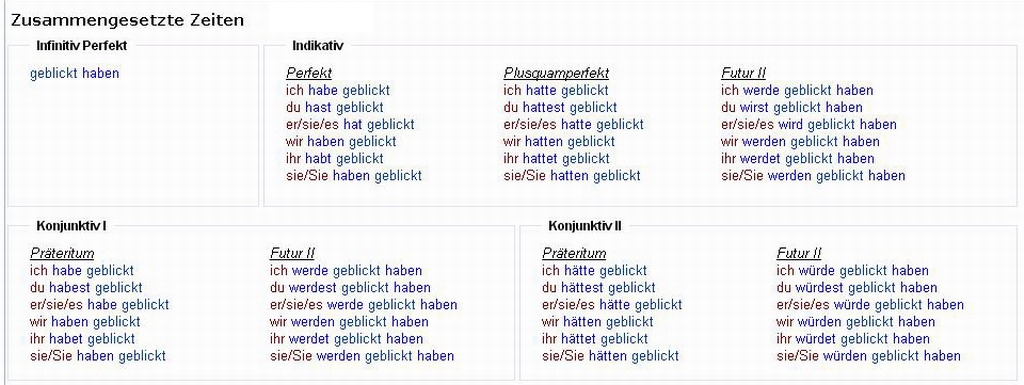 Verbformen von - blicken