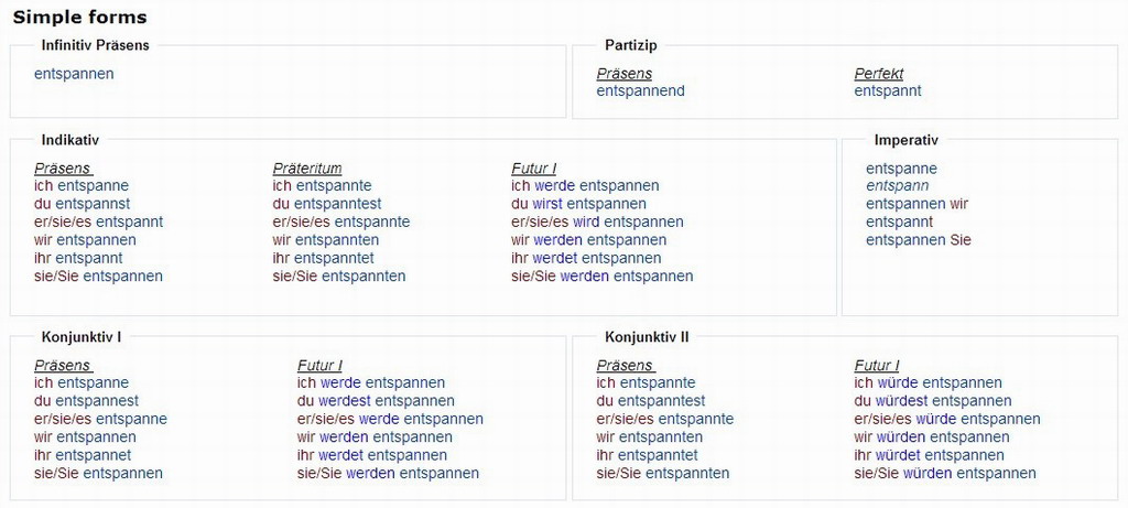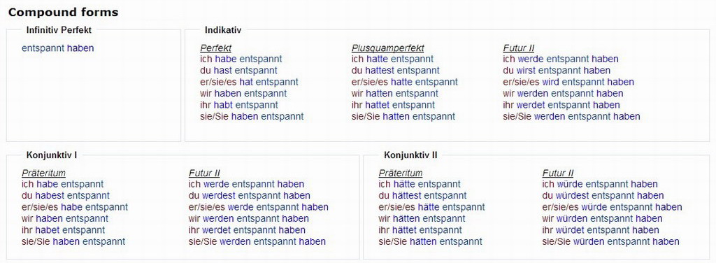 Verbformen von - entspannen