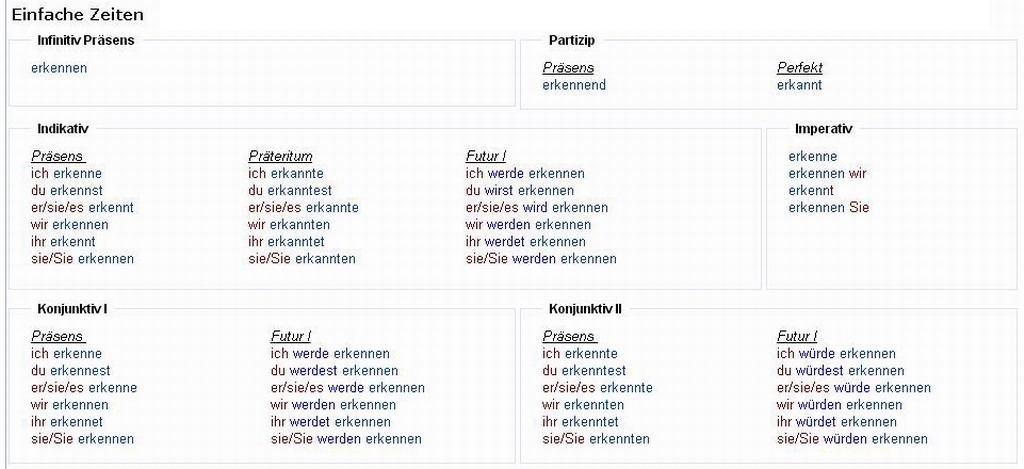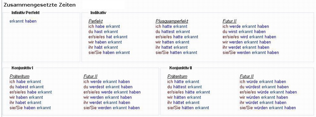 Verbformen von - erkennen