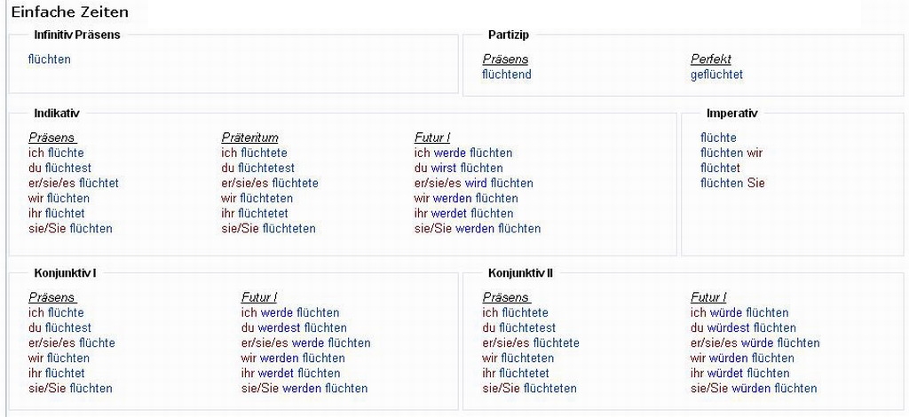 Verbformen von - flüchten