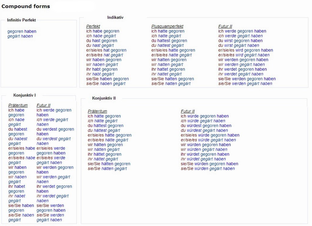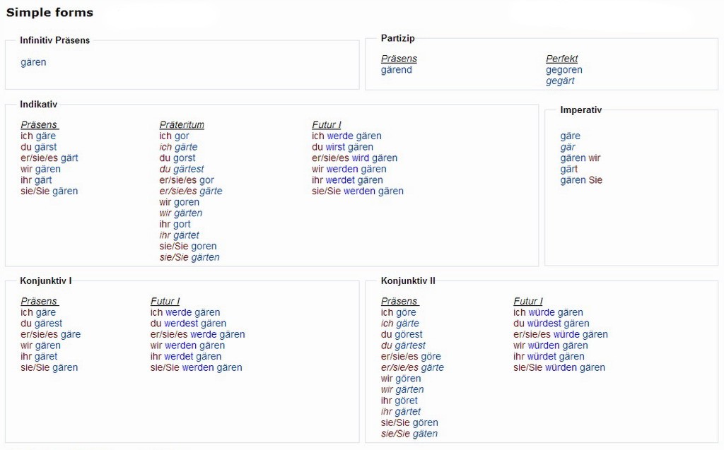 Verbformen von - gären