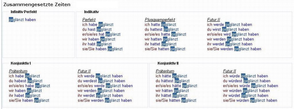 Verbformen von - glänzen