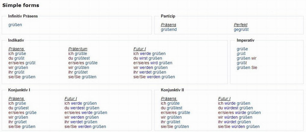 Verbformen von - grüßen