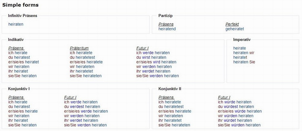 Verbformen von - heiraten