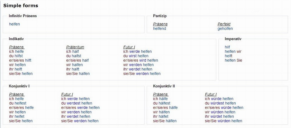 Verbformen von - helfen