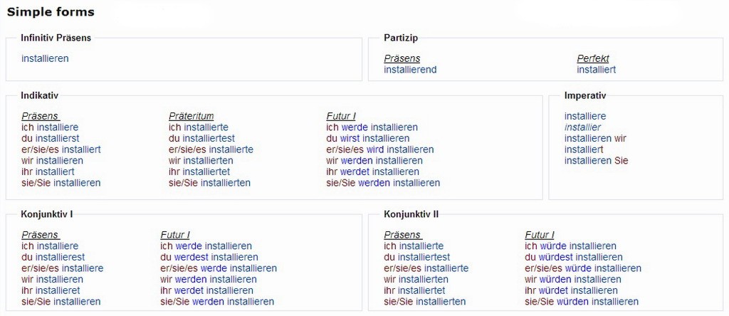 Verbformen von - installieren