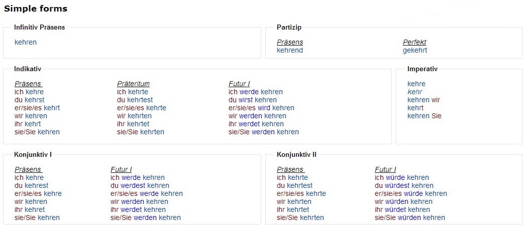 Verbformen von - kehren
