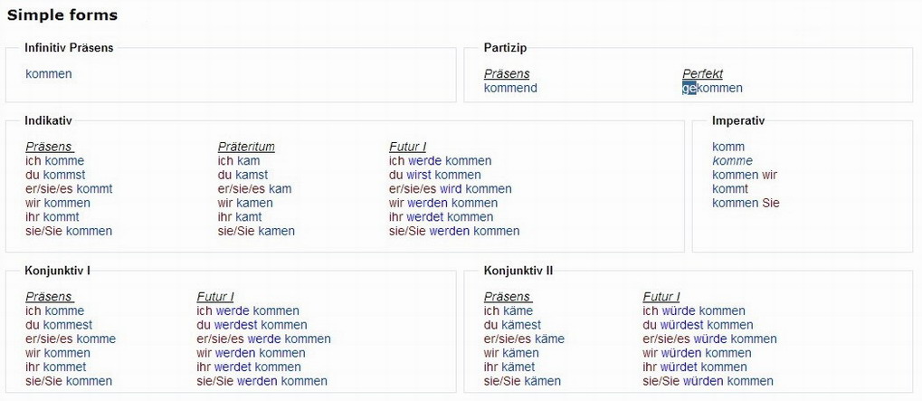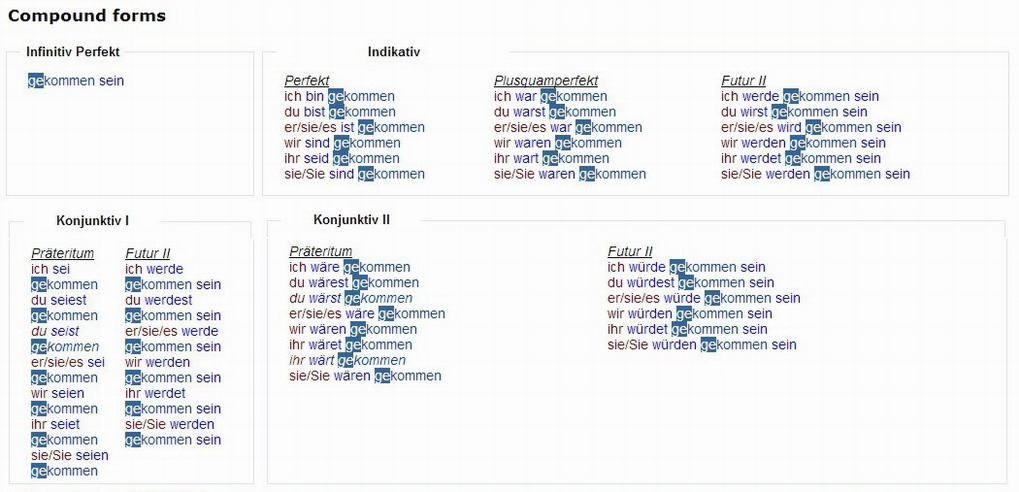Verbformen von - kommen