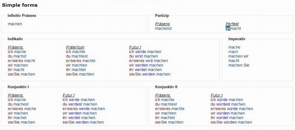 Verbformen von - machen