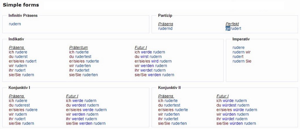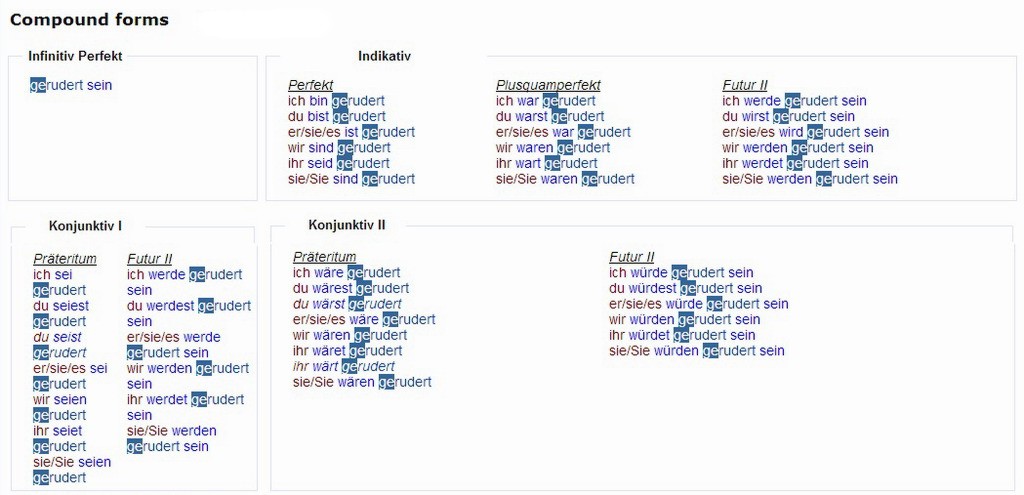 Verbformen von - rudern