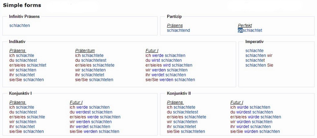 Verbformen von - schlachten