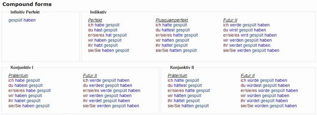 Verbformen von - spülen