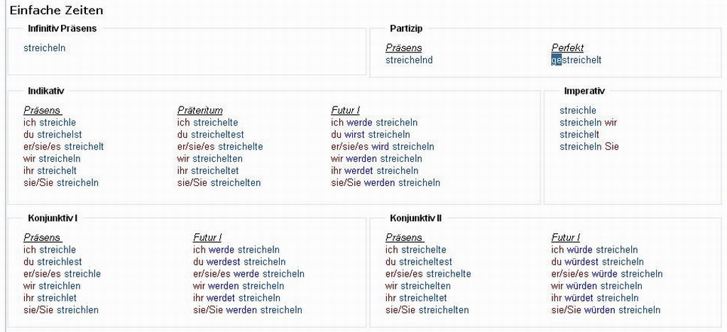 Verbformen von - streicheln