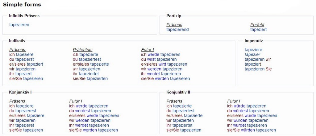 Verbformen von - tapezieren