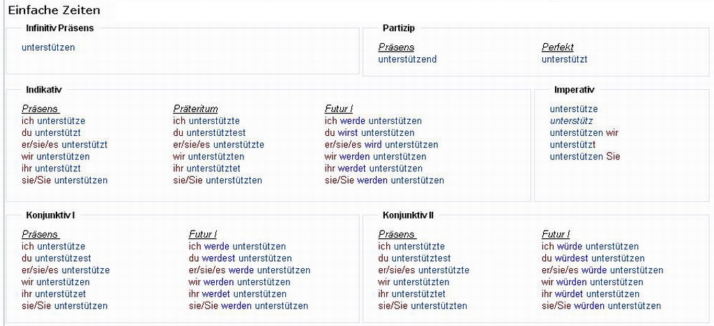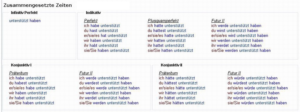 Verbformen von - unterstützen