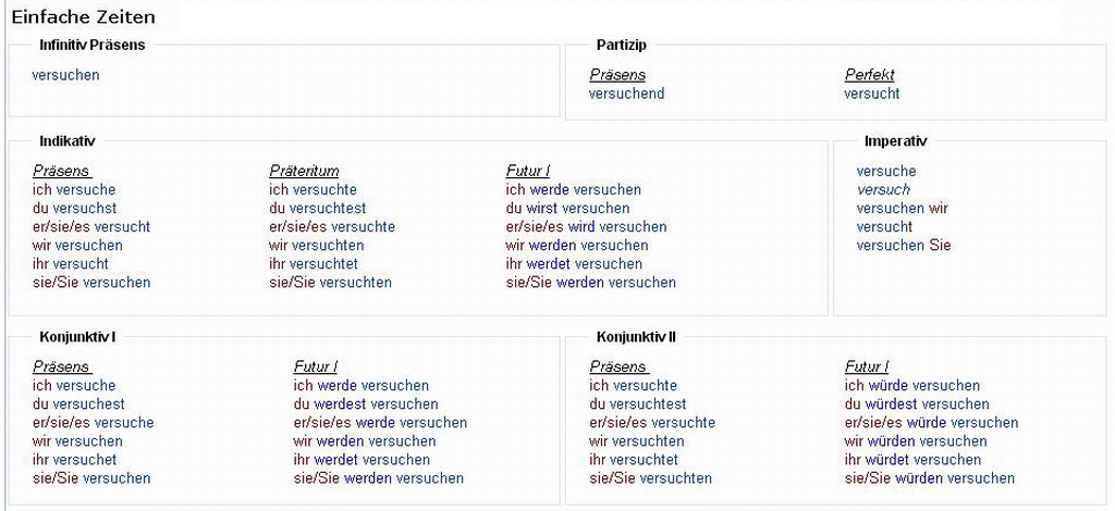 Verbformen von - versuchen