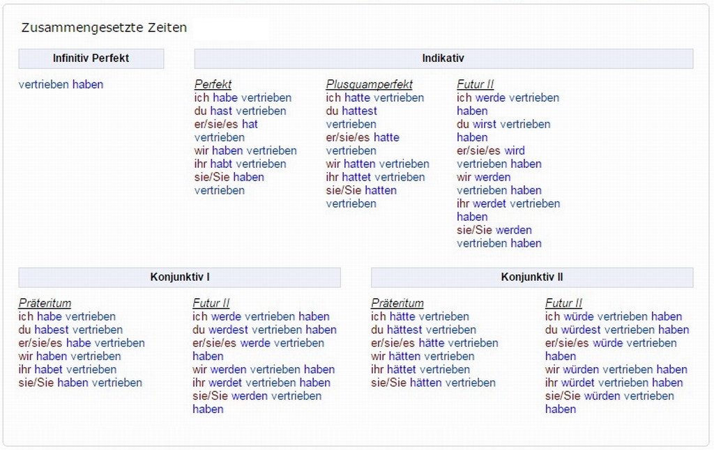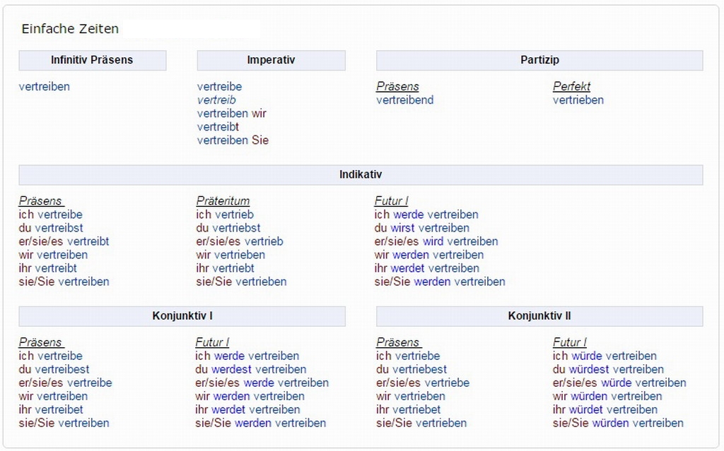 Verbformen von - vertreiben