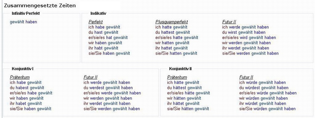 Verbformen von - wählen