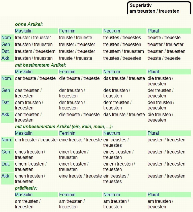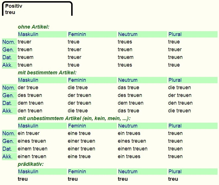 Deklination von - treu