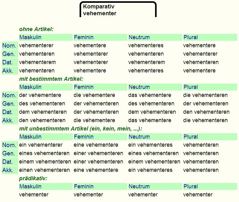 Deklination von - vehement