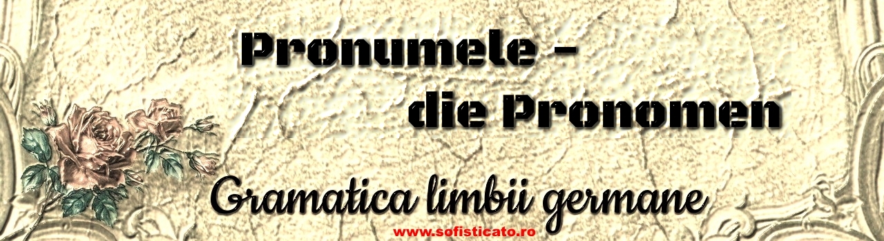 Pronumele (în germană Pronomen) sunt cuvinte care înlocuiesc un substantiv și evită repetiția în comunicare. În germană, ca și în română, pronumele se flexionează în funcție de caz (nominativ, acuzativ, dativ, genitiv), gen (masculin, feminin, neutru), și număr (singular/plural). Pronumele sunt părți de vorbire care înlocuiesc substantivele și contribuie la evitarea repetițiilor, facilitând astfel o exprimare mai clară și mai fluidă. În limba germană, pronumele joacă un rol esențial în structurarea corectă a propozițiilor, fiind marcate de gen, număr și caz. Există mai multe tipuri de pronume – personale, posesive, demonstrative, interogative, reflexive și relative – fiecare având o funcție bine definită. Înțelegerea formei și utilizării corecte a pronumelor este esențială pentru comunicarea eficientă în limba germană, deoarece acestea reflectă nu doar identitatea, ci și raporturile gramaticale dintre părțile propoziției. Principalele tipuri de pronume: