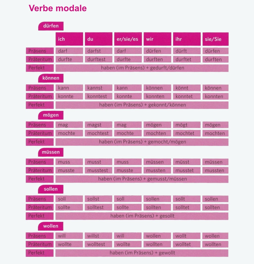 Cele mai importante verbe neregulate (die wichtigsten unregelmäßigen Verben - Modalverben)