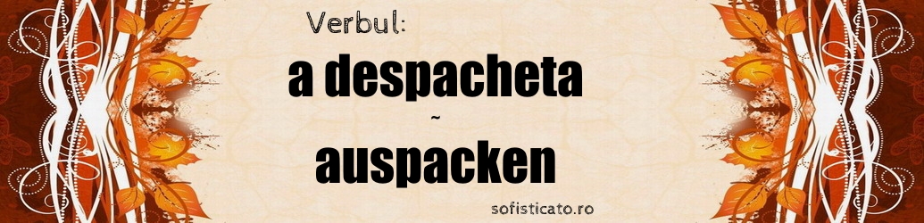 Verbul „a despacheta” în limba germană se traduce prin „auspacken”. Acesta înseamnă a scoate sau a desfăcu un pachet, o cutie sau un bagaj pentru a vedea ce se află în interior. Este un verb separabil, ceea ce înseamnă că în propoziții, „aus” se va despărți de „packen” și se va plasa la începutul frazei, iar „packen” rămâne la locul său. De exemplu: