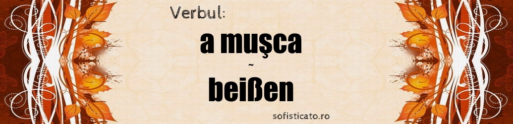 Verbul „beißen” în limba germană înseamnă „a mușca” și este un verb neregulat, folosit pentru a descrie acțiunea de a prinde ceva sau pe cineva cu dinții, de obicei dintr-o reacție de apărare sau în scopul de a consuma hrană. Se poate referi atât la acțiunea unui animal, cât și la comportamentul unui om în diverse contexte, inclusiv când cineva „mușcă” dintr-o mâncare sau chiar figurativ, când cineva are o reacție aspră sau agresivă ( jemanden beißen – „a mușca pe cineva”). În limba germană, acest verb poate fi folosit și pentru a descrie o reacție mai intensă, de obicei într-un sens mai puternic sau mai agresiv.