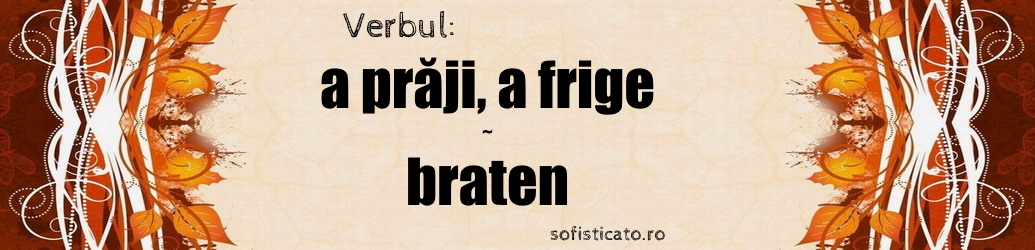 Verbe derivate din „braten” (a prăji / a frige), împreună cu două propoziții pentru fiecare, potrivite pentru nivelul B1.