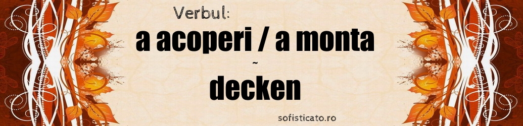 Verbul german decken poate avea și sensul de a acoperi sau a monta, fiind folosit în contexte tehnice sau descriptive. De exemplu, se poate referi la acoperirea unei suprafețe cu un material (ca în „das Dach decken” – a acoperi acoperișul) sau la montarea unei piese sau a unui element. Acest sens al verbului decken este important în vorbirea despre construcții, reparații sau alte activități practice, echivalând în română cu verbul a acoperi sau a monta, în funcție de context.