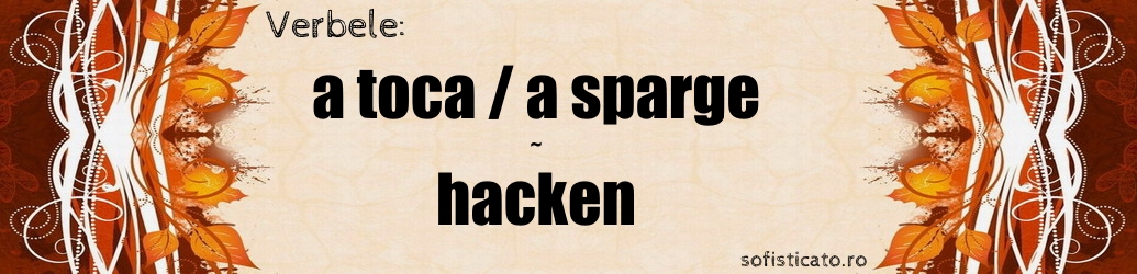 Verbul hacken ( a toca / a sparge ) desemnează acțiunea de a tăia sau zdrobi un obiect în bucăți mici, de obicei cu ajutorul unui instrument ascuțit. În limba germană, acest verb este folosit în special în contextul pregătirii alimentelor sau al prelucrării materialelor, dar poate fi folosit și figurativ pentru a descrie acțiuni repetate și precise.